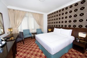 يقع فندق دلة طيبة على بعد 50 متر من المسجد النبوي والمنطقة التجارية وخيارات التسوق الواقعة في المدينة المنورة. توفر كل غرفة واسعة في فندق دلة طيبة تكييف هواء، وتتميز بعض الغرف بإطلالات على المسجد النبوي، كما تتميز جميع الغرف بتلفزيونات بشاشات مسطحة وصناديق ودائع آمنة، وتحتوي الحمامات على لوازم استحمام مجانية ونعال. يقدم المقهى في اللوبي مجموعة متنوعة من المشروبات الساخنة والعصائر الطازجة والحلويات والوجبات الخفيفة، كما يتم تقديم وجبة الإفطار في فندق دلة طيبة عند الطلب، وتتوفر خدمة الغرف أيضًا على مدار 24 ساعة في اليوم. يقع مسجد القبلتين ومسجد قباء على بعد 7 كم من الفندق، كما يبعد مطار الأمير محمد مسافة 25 كم.